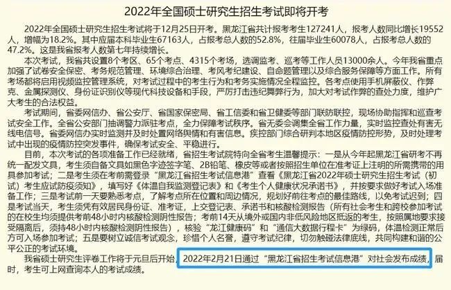| 22考研初试结束后,即将面临的就是复试,学姐给大家梳理了一下复试的时间线,我们一起来捋一捋~ 初试成绩公布 按照往年的成绩公布时间一般都是在2月中下旬,今年到目前为止,只有黑龙江省公布了考研初试成绩公布时间为2022年2月21日,剩下的省份基本还没有公布。
